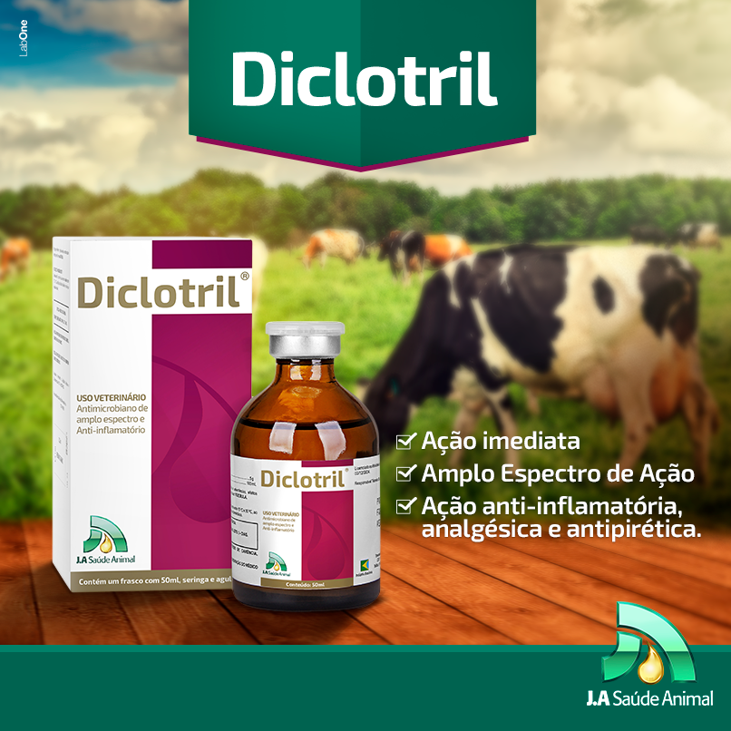 DICLOTRIL® é um antimicrobiano de amplo espectro e ação rápida que combate enfermidades causadas por bactérias Gram-positivas, Gram-negativas e Micoplasmas. É especialmente indicado nas infecções entéricas, respiratórias, em mastites, pododermatites, onfaloflebites, anaplasmose, septicemia, profilaxia de cirurgias e infecções após o parto.